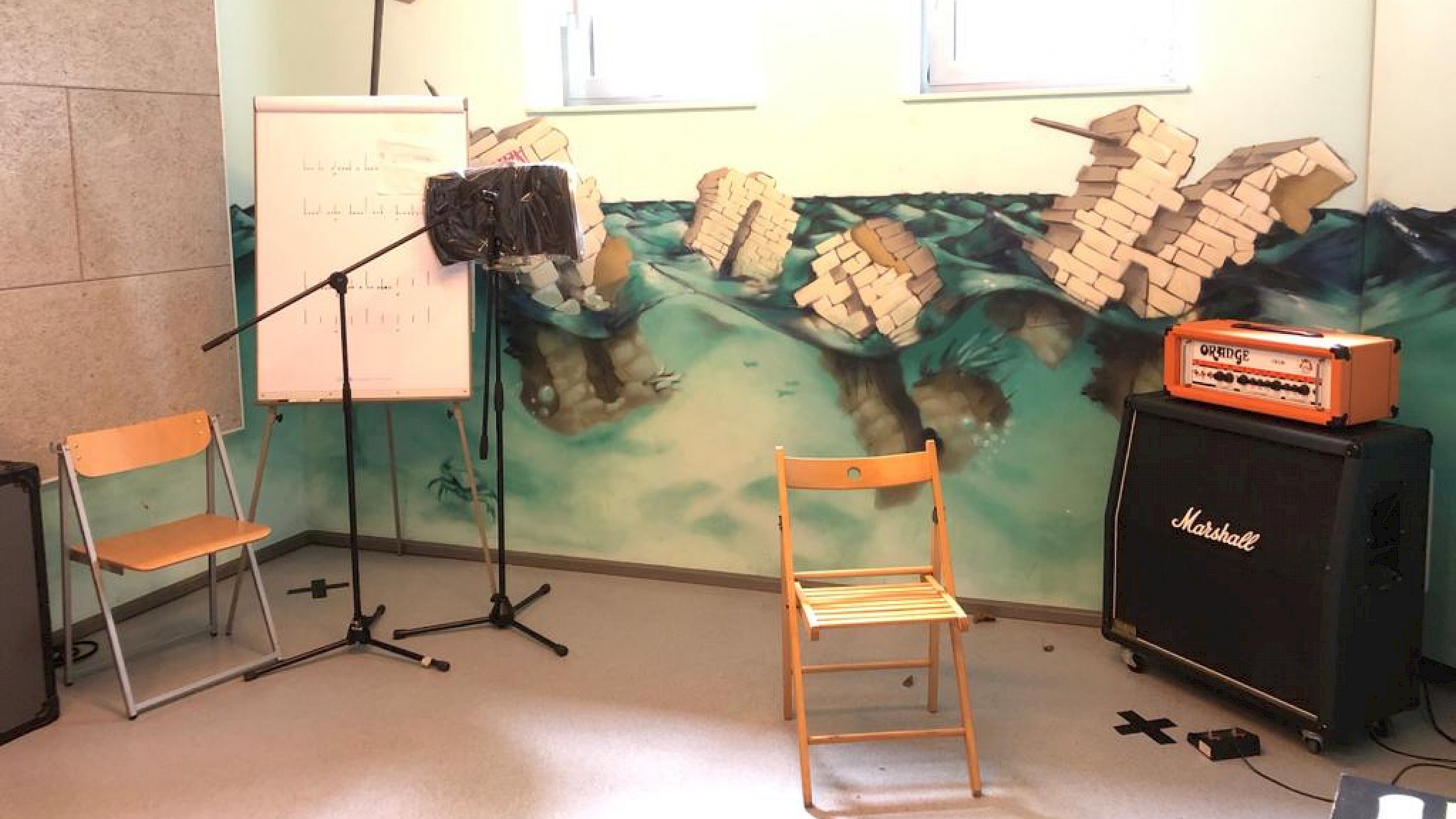 Bei uns kannst du mit deiner Band proben, Unterricht nehmen, Instrumente ausprobieren, Konzerte spielen, Tipps und Tricks zum Musizieren bekommen und auch einfach Musikhören und Quatschen.