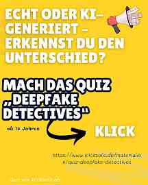 KI-Chatbots, digitale Begleiter und Deepfakes sind längst Teil unseres Alltags. Doch was macht das mit uns und unseren Beziehungen? Bei uns im Trockendock könnt ihr euch mit Quiz und verschiedenen Materialien spielerisch mit den Chancen und Risiken von KI und Deepfakes auseinandersetzen.