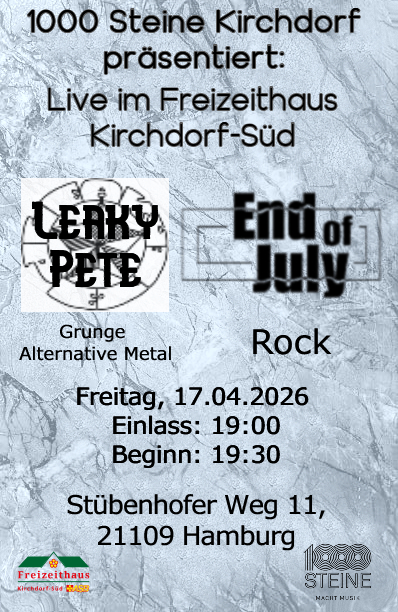 Unsere 1000 Steine Band End OF JULY ist mit dabei,