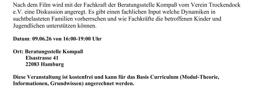 Fortbildung im Kompaß: Ein Film über Jugendliche, deren Eltern alkoholabhängig sind