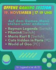Offene Gaming Session | mittwochs, 16:00 – 19:00 Uhr