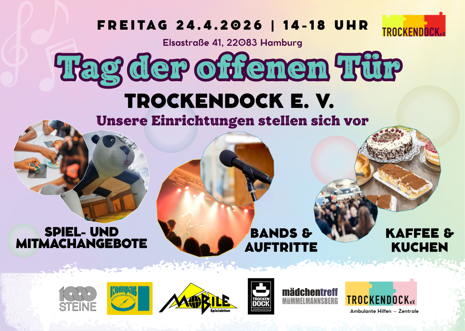 Aktuelles 24.4.2026 14:00–18:00 Uhr Jugendmusikzentrum Trockendock Elsastr. 41 22083 Hamburg Tel.: 040-238326080 Merken Tag der offenen Tür