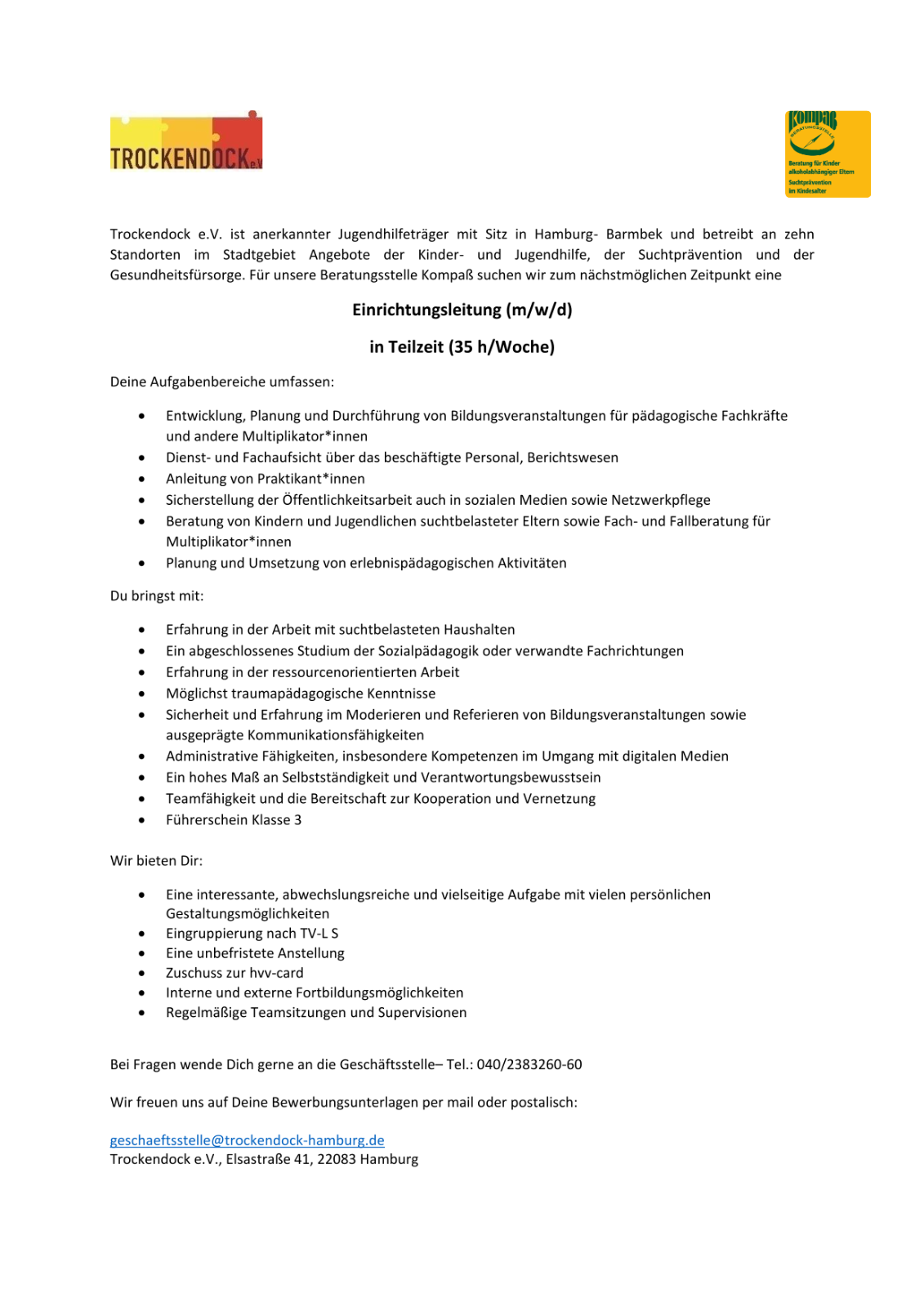 Einrichtungsleitung (m/w/d) in Teilzeit (35 h/Woche)